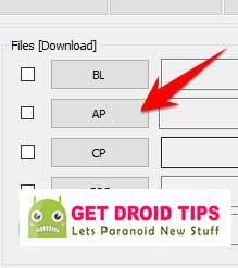 • Laden Sie nun die gepatchte boot.tar-Datei in die AP Sektion.