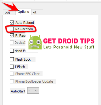 • Gehen Sie zu Option und sehen Sie, ob die Automatischer Neustart und F-Reset-Zeit ausgewählt oder nicht). Wenn nicht, wählen Sie diese beiden aus. Nicht auswählen neu partitionieren.