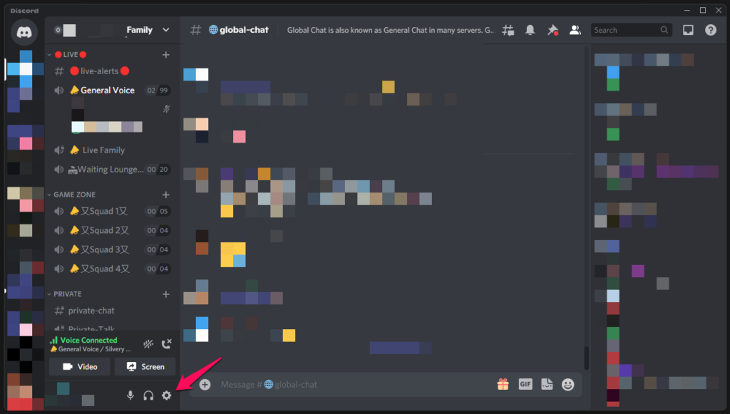 1. Åbn Discord, og klik derefter på tandhjulsikonet nederst.