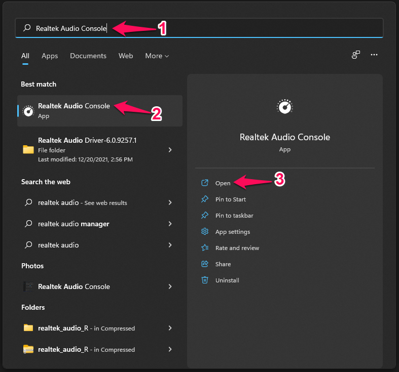 1. Tryk på Windows-tasten og åbn “Realtek Audio Console”.