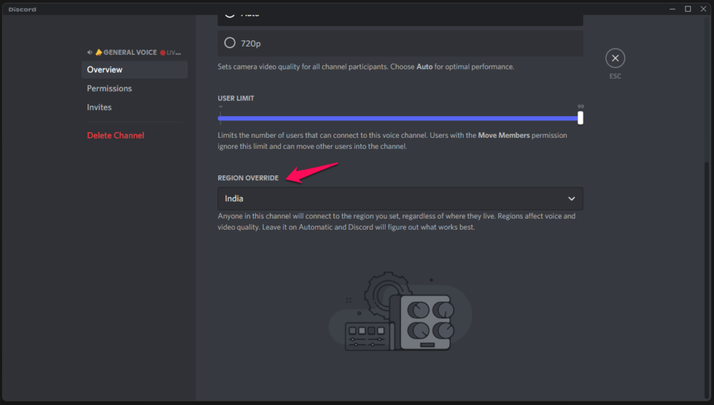 Serveren, du har tilsluttet dig Voice Channel, hostes på en server, der er langt væk fra dit område. Latensen øges eksponentielt, hvis du har oprettet forbindelse til en stemmekanal, der er hostet på en server, der er placeret i et andet land. Du kan bede din serveradministrator om at ændre Voice Channel-serverregionen, og jeg har ændret serverregionen adskillige gange tidligere.