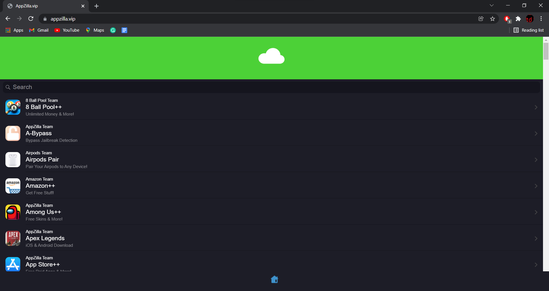 Appzilla.vip-domænet blev registreret i marts 2020, hvilket betyder, at det er forholdsvis nyt og hæver grænsen for bekymringer, da en virksomhed måske ikke bliver for hurtigt populær. Appzilla.vip lader dig downloade betalte versioner af apps gratis, hvilket betyder, at du får gratis ting ved at downloade Amazon++, A-Bypass lader dig omgå jailbreak-detektion og så videre. Der er et ordsprog, der siger, at intet er gratis, så hvorfor tilbyder Appzilla.vip angiveligt legitime betalte versioner af iOS- og Android-enheder?