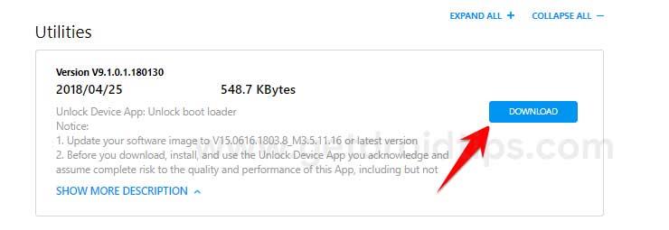 - Πρώτα απ ‘όλα, μεταβείτε σε αυτόν τον σύνδεσμο και κατεβάστε την εφαρμογή ξεκλειδώματος του bootloader.