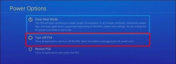 - Στη συνέχεια, επιλέξτε Απενεργοποίηση PS4 από το μενού.