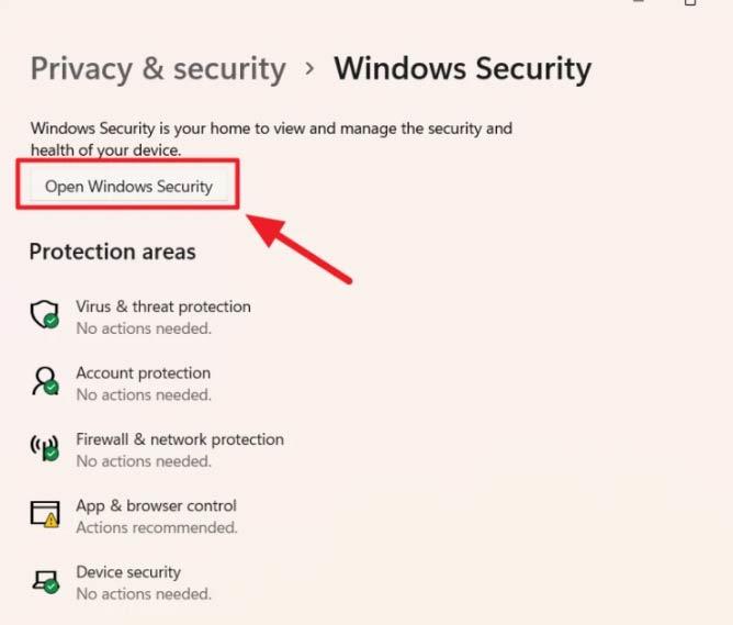- Luego, haga clic en Abra Seguridad de Windows y alternar el botón para apagarlo.