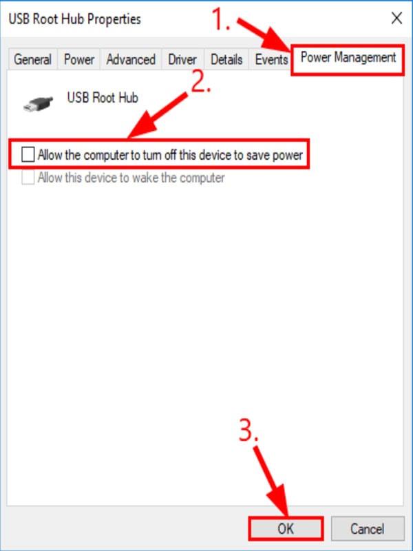 USB-juurihubin virranhallinnan sammuttaminen on myös loistava valinta tämän ongelman korjaamiseen. Mutta kokeile tätä menetelmää vain, jos yllä oleva prosessi ei toimi. Tee se noudattamalla alla olevia ohjeita:
