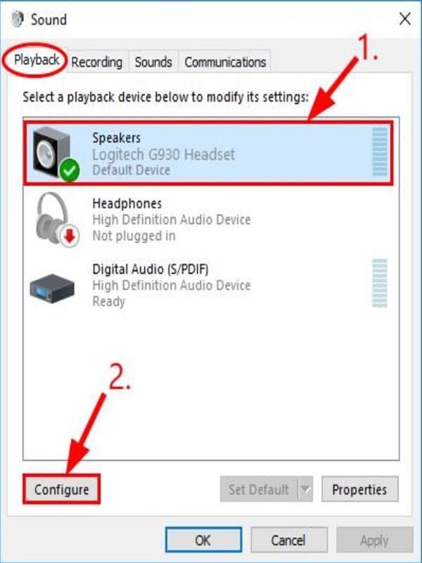 - Klikkaa Kaiuttimet (Logitech G930 -kuulokkeet)
