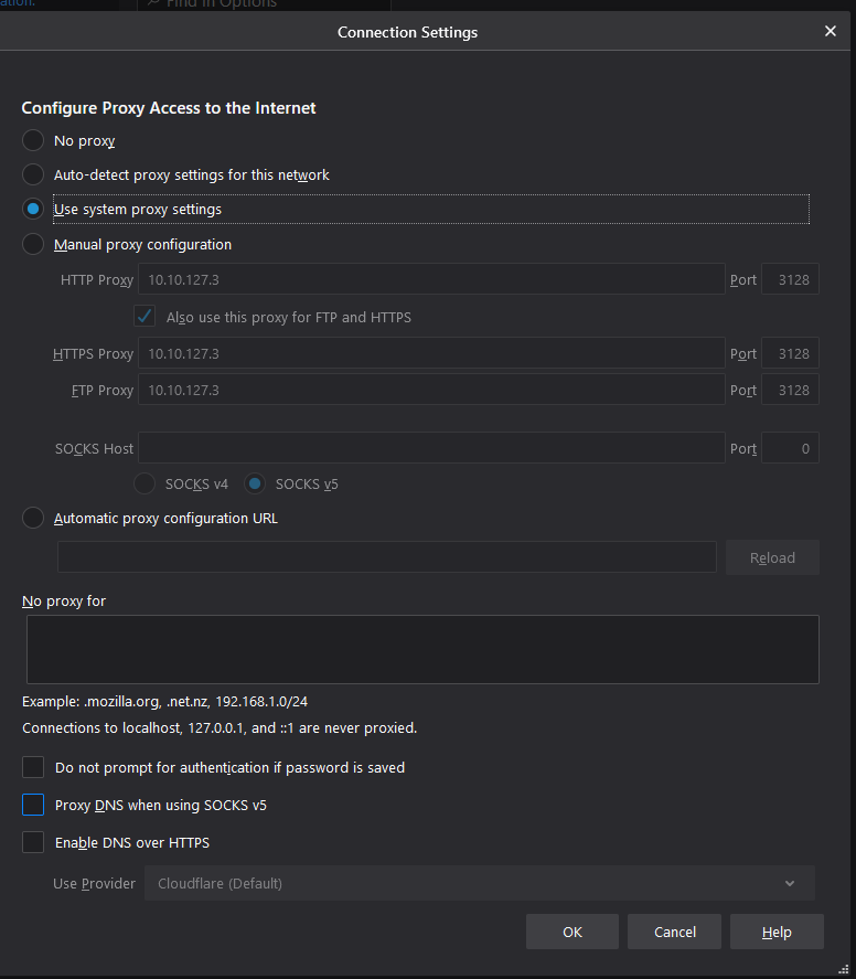 - Valitse nyt ”Ei välityspalvelinta” tai ”Käytä järjestelmän välityspalvelinta” ja napsauta Ok.