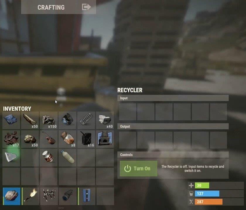 Ezen erőforrások egy része azonban létfontosságú a fegyverek elkészítéséhez, ezért csak azokat a tárgyakat szabad újrahasznosítani, amelyekre a későbbiekben nem lesz szükség.