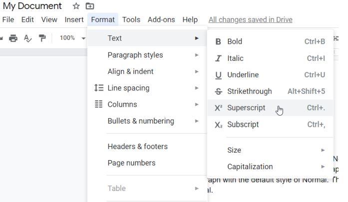 - Verfügt Google Docs über hochgestellte und tiefgestellte Tastenkombinationen?