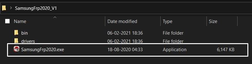 - Po extrakcii by ste mali získať súbor SamsungFRP2020.exe, dvojitým kliknutím naň spustíte nástroj.